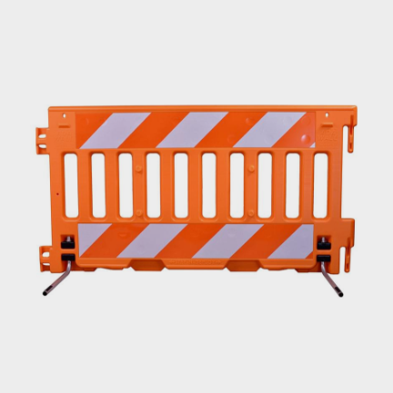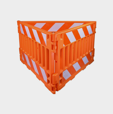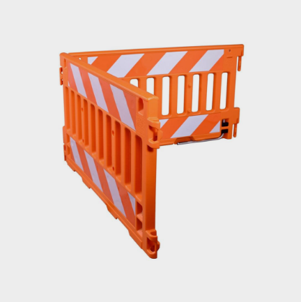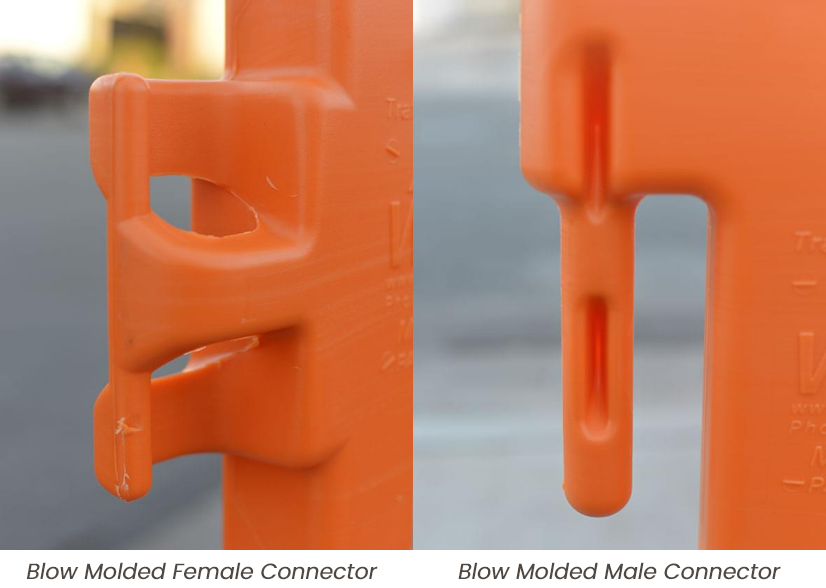 Blow-molded interlocking connectors make it possible to erect a strong, stable barrier - even on uneven terrain.