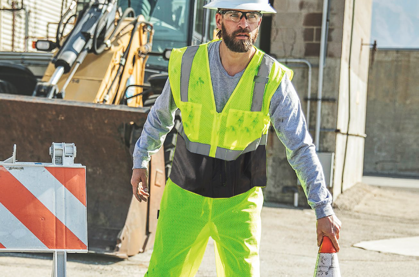 A Class 2 safety vest is the minimum requirement on job sites with low-light risks or those near traffic exceeding 25 mph. Combine with Class E pants to create a Class 3 outfit or wear it alone.