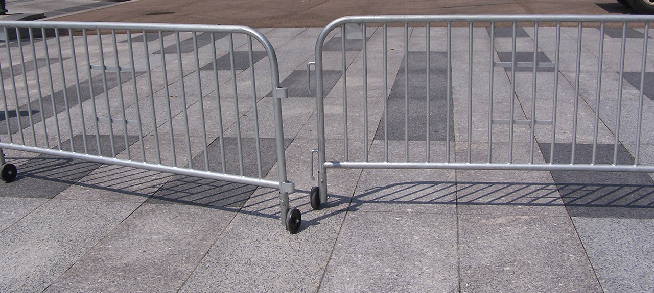 Wheel stands make it quick and easy to add access points or gates along lines of barricades. Simply attach the wheel stand to the bottom post of either end of a barricade, and the barricade can now swing open and close in the same manner of a gate. Available in hot-dipped galvanized, black powder, and orange powder coating.