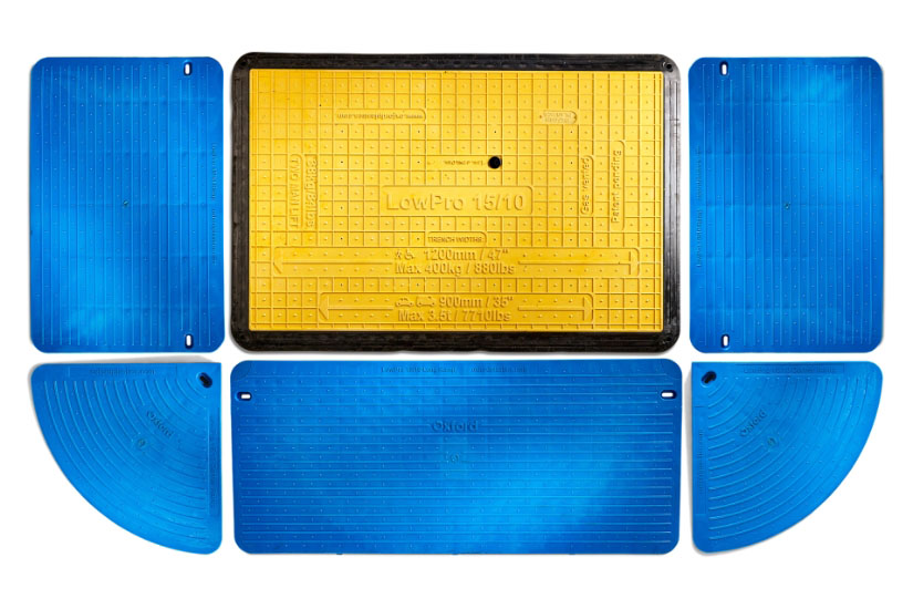 The 4-way connector is originally supplied with LowPro® 15/10 ramps. These ramps are crucial to the system, providing easier access for pedestrians and vehicles and preventing feet or wheels from tripping over or getting stuck.