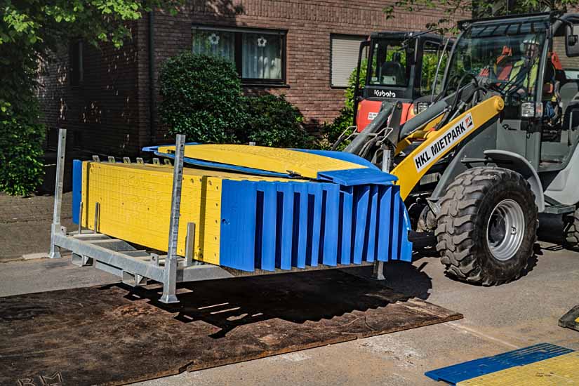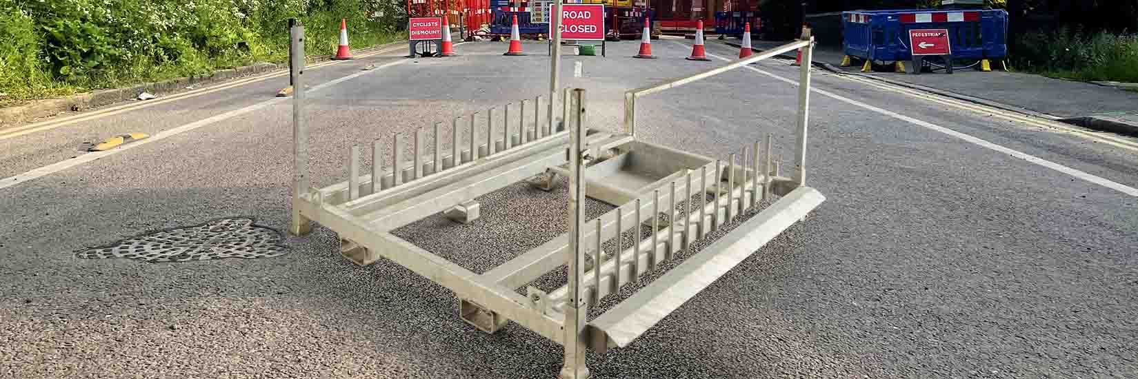 A stillage is a storage and transportation frame, specially designed to hold materials securely. This facilitates easy transport of up to 12 LowPro 23/05 Road Plates, 2 End Pieces, and 2 EasiLift handles, providing coverage for up to 20 feet of trenching. It also includes a storage box for bolts and tools to keep everything organized during transport.