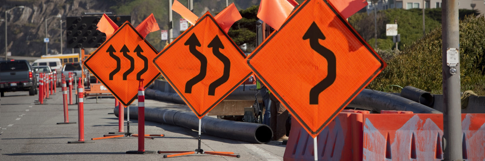 Not every road closure is scheduled. In case of emergency or disaster, these roll-up signs are preferred for their ease of use in setup and storage.