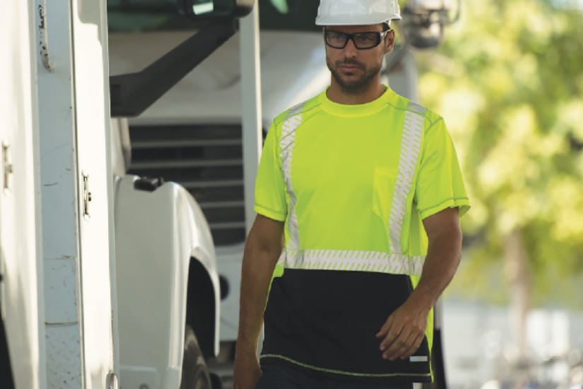Some start their shifts with more layers, such as Hi-Viz parkas and vests, but must scale back throughout the day to cool off. Ensure every layer prevents accidents by starting with a reliable base – the short-sleeve Class 3 tee.