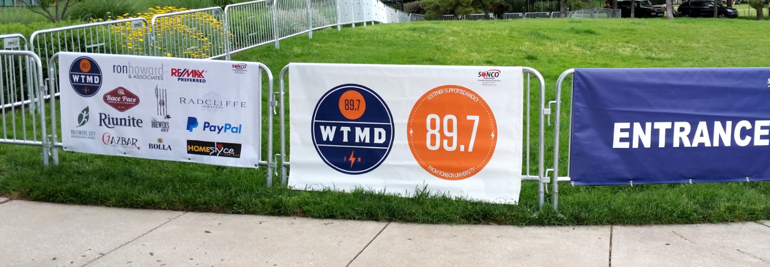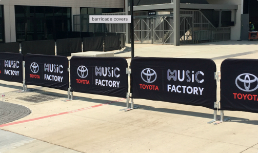 SONCO barrier jackets instantly transform the look of steel barricades with your custom copy, art, or logo. Get maximum coverage with 0% opacity solid vinyl covers that look great at parades, conventions, festivals, sporting events, and more.